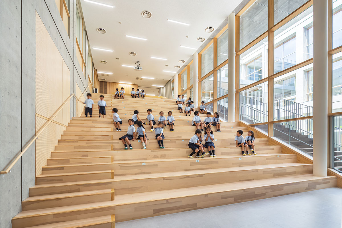 “Heart of School”(学びの重要な施設)として位置付けています。立川国際中等教育学校とは空中歩廊でつながっており、全ての児童・生徒がアクセスしやすいつくりになっています。